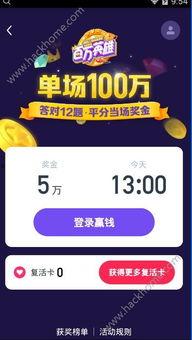 首先,你得知道“百万英雄”的游戏规则。这款游戏每天晚上8点开始,共有10道题目,每道题目有10个选项。答对题目就能获得相应的奖金,答错则扣除相应金额。要想在游戏中脱颖而出,首先得熟悉规则。